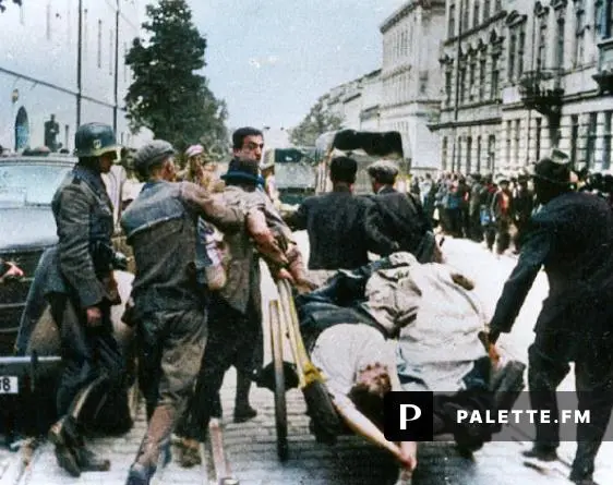 GALLERY PHOTO XLVII Colourisation. Jewish civilians were seized, beaten then murdered.